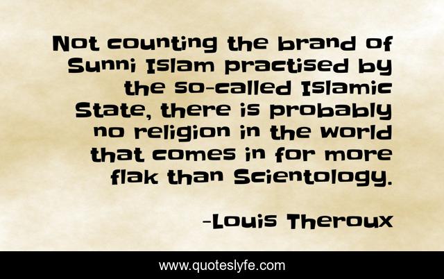 This page presents the quote "Not counting the brand of Sunni Islam practised by the so-called Islamic State, there is probably no religion in the world that comes in for more flak than Scientology.". Author of this quote is Louis Theroux. This quote is about world, brand, islam,.
