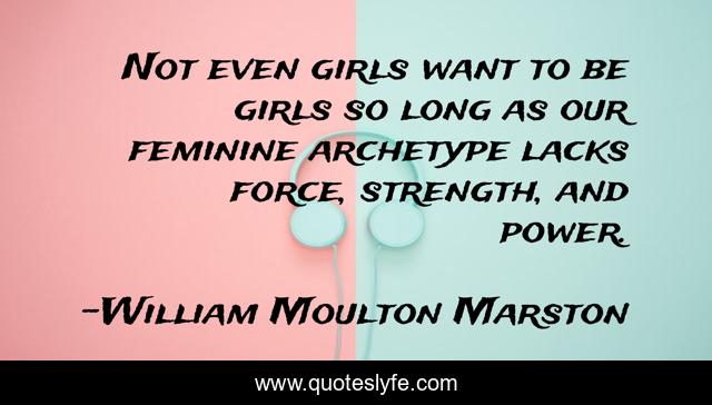 This page presents the quote "Not even girls want to be girls so long as our feminine archetype lacks force, strength, and power.". Author of this quote is William Moulton Marston. This quote is about power, long,.