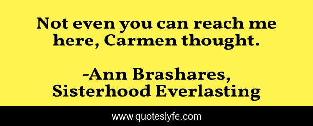"Ann Brashares, Sisterhood Everlasting Quotes." Quoteslyfe.com, 2025. Mon. 08 Dec. 2025. <https://www.quoteslyfe.com/quote/Not-even-you-can-reach-me-here-191928>.