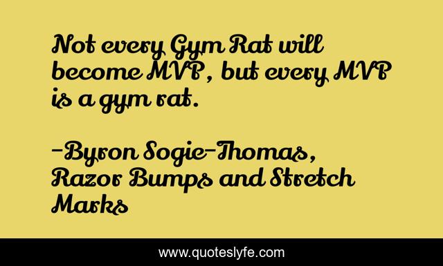 This page presents the quote "Not every Gym Rat will become MVP, but every MVP is a gym rat.". Author of this quote is Byron Sogie-Thomas, Razor Bumps and Stretch Marks. .