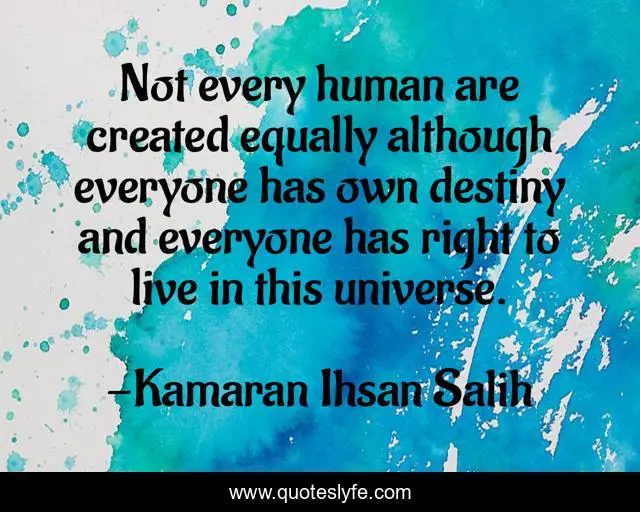 This page presents the quote "Not every human are created equally although everyone has own destiny and everyone has right to live in this universe.". Author of this quote is Kamaran Ihsan Salih. This quote is about quotes, phylosophical, phylosophy, phylosophy-of-life, quotes-about-life,.