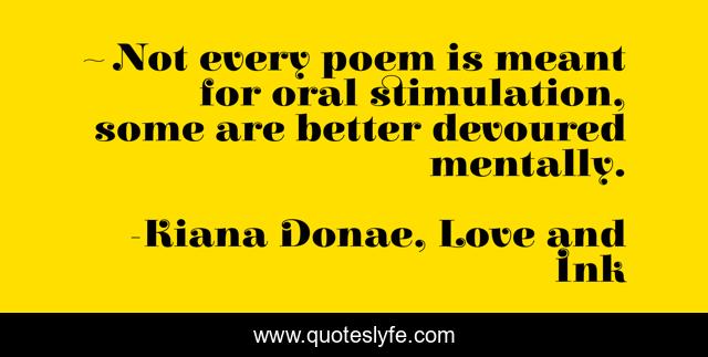 This page presents the quote "~ Not every poem is meant for oral stimulation, some are better devoured mentally.". Author of this quote is Kiana Donae, Love and Ink. .