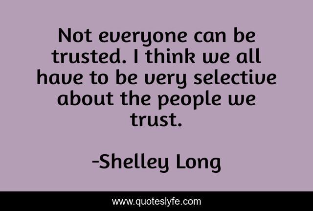 This page presents the quote "Not everyone can be trusted. I think we all have to be very selective about the people we trust.". Author of this quote is Shelley Long. This quote is about think, trusted, people,.