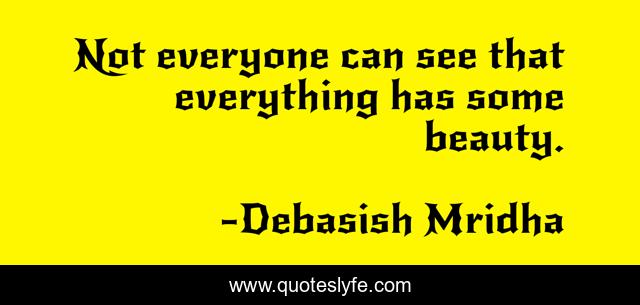 This page presents the quote "Not everyone can see that everything has some beauty.". Author of this quote is Debasish Mridha. This quote is about debasish, everything-has-some-beauty, mridha, philosophy, debasish-mridha, not-everyone-can-see,.