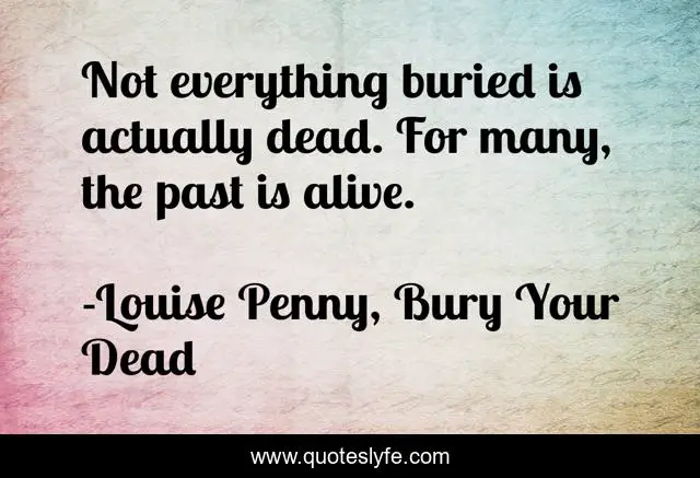 This page presents the quote "Not everything buried is actually dead. For many, the past is alive.". Author of this quote is Louise Penny, Bury Your Dead. This quote is about past, buried-past, buried,.