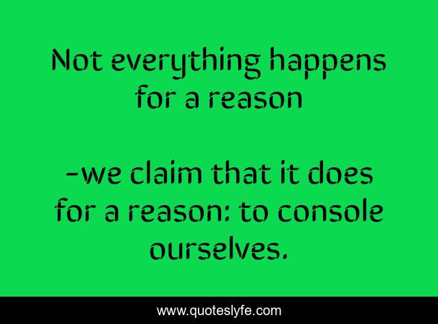 This page presents the quote "Not everything happens for a reason". Author of this quote is we claim that it does for a reason: to console ourselves.. .