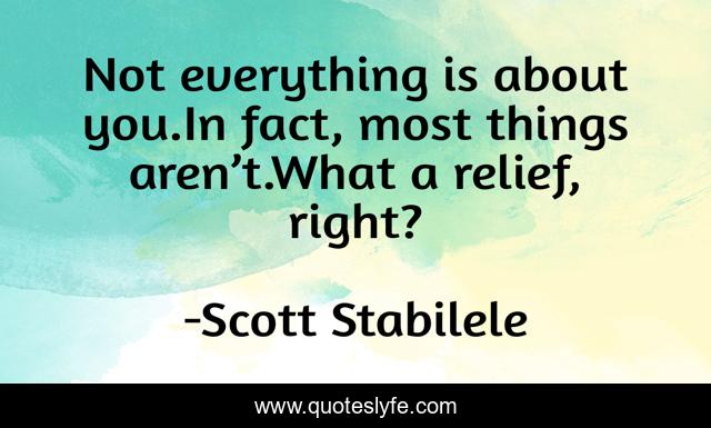 This page presents the quote "Not everything is about you.In fact, most things aren’t.What a relief, right?". Author of this quote is Scott Stabilele. This quote is about life, inspiration,.