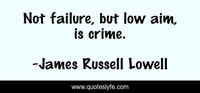 This page presents the quote "Not failure, but low aim, is crime.". Author of this quote is James Russell Lowell. This quote is about aim, low, crime,.