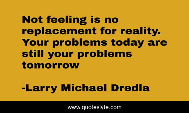 This page presents the quote "Not feeling is no replacement for reality. Your problems today are still your problems tomorrow". Author of this quote is Larry Michael Dredla. This quote is about enthusiasm, addiction, life-experience, inspirational,.