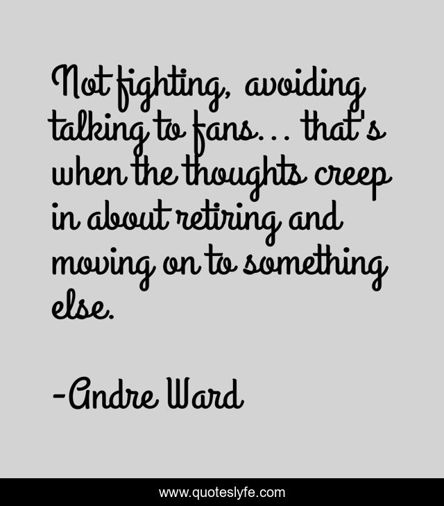 This page presents the quote "Not fighting, avoiding talking to fans... that's when the thoughts creep in about retiring and moving on to something else.". Author of this quote is Andre Ward. This quote is about moving, thoughts, fighting,.