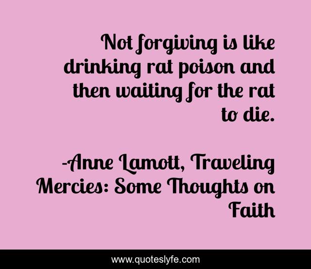 "Anne Lamott, Traveling Mercies: Some Thoughts on Faith Quotes." Quoteslyfe.com, 2025. Sun. 07 Dec. 2025. <https://www.quoteslyfe.com/quote/Not-forgiving-is-like-drinking-rat-poison-121522>.