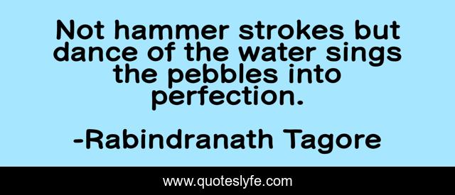 This page presents the quote "Not hammer strokes but dance of the water sings the pebbles into perfection.". Author of this quote is Rabindranath Tagore. .