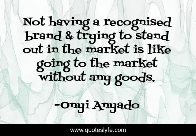 This page presents the quote "Not having a recognised brand & trying to stand out in the market is like going to the market without any goods.". Author of this quote is Onyi Anyado. This quote is about marketplace, business, branding, brand, startup, entrepreneurship, entrepreneur, leadership, innovation,.