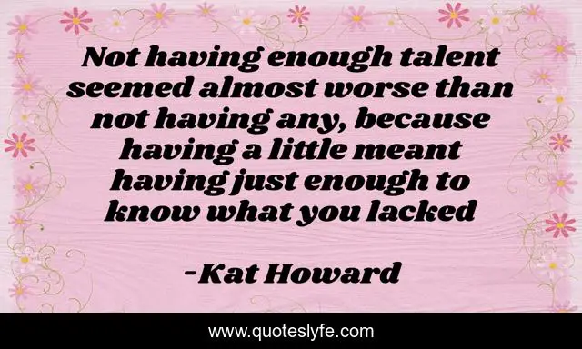 "Kat Howard Quotes." Quoteslyfe.com, 2025. Mon. 08 Dec. 2025. <https://www.quoteslyfe.com/quote/Not-having-enough-talent-seemed-almost-worse-66386>.