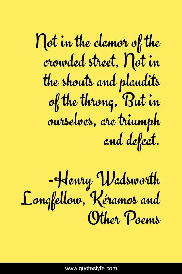 This page presents the quote "Not in the clamor of the crowded street, Not in the shouts and plaudits of the throng, But in ourselves, are triumph and defeat.". Author of this quote is Henry Wadsworth Longfellow, Kéramos and Other Poems. This quote is about self, poetry,.