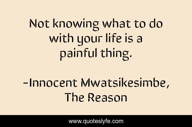This page presents the quote "Not knowing what to do with your life is a painful thing.". Author of this quote is Innocent Mwatsikesimbe, The Reason. This quote is about life, success, career, positive, motivational, motivation, self-help, self-improvement, inspirational,.