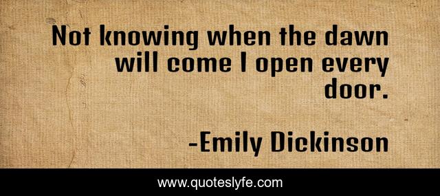 "Emily Dickinson Quotes." Quoteslyfe.com, 2025. Fri. 05 Dec. 2025. <https://www.quoteslyfe.com/quote/Not-knowing-when-the-dawn-will-come-275637>.