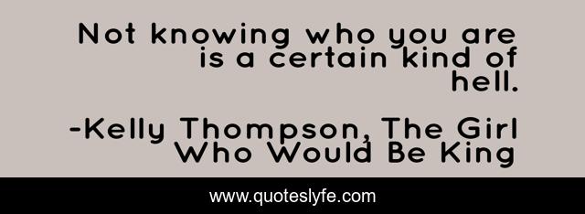 "Kelly Thompson, The Girl Who Would Be King Quotes." Quoteslyfe.com, 2025. Fri. 05 Dec. 2025. <https://www.quoteslyfe.com/quote/Not-knowing-who-you-are-is-a-47661>.