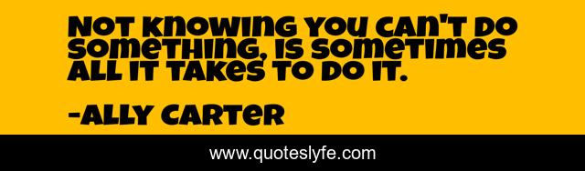 This page presents the quote "Not knowing you can't do something, is sometimes all it takes to do it.". Author of this quote is Ally Carter. This quote is about carter, girls, gallagher, inspirational, enthusiasm, ally,.