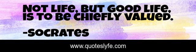 This page presents the quote "Not life, but good life, is to be chiefly valued.". Author of this quote is Socrates. This quote is about life, value,.