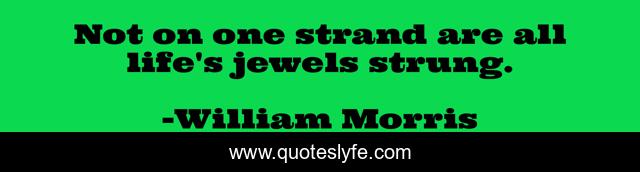 This page presents the quote "Not on one strand are all life's jewels strung.". Author of this quote is William Morris. This quote is about life, jewels, strand,.