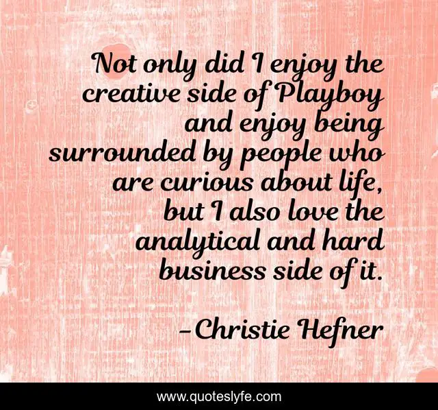 This page presents the quote "Not only did I enjoy the creative side of Playboy and enjoy being surrounded by people who are curious about life, but I also love the analytical and hard business side of it.". Author of this quote is Christie Hefner. This quote is about life, love, affection, creative,.