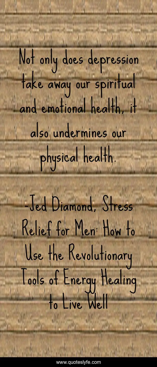 This page presents the quote "Not only does depression take away our spiritual and emotional health, it also undermines our physical health.". Author of this quote is Jed Diamond, Stress Relief for Men: How to Use the Revolutionary Tools of Energy Healing to Live Well. This quote is about men, stress-relief,.