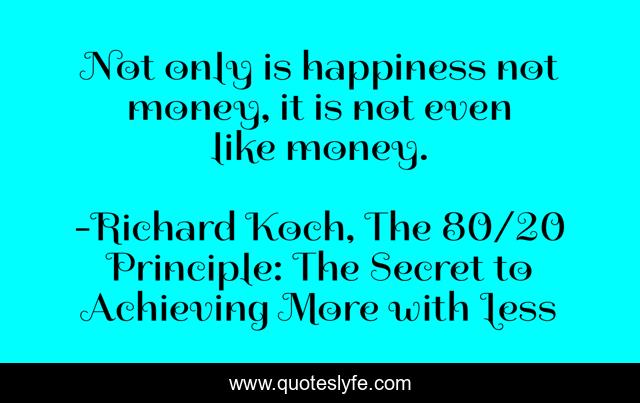 "Richard Koch, The 80/20 Principle: The Secret to Achieving More with Less Quotes." Quoteslyfe.com, 2025. Sun. 07 Dec. 2025. <https://www.quoteslyfe.com/quote/Not-only-is-happiness-not-money-it-80375>.