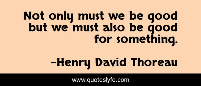 This page presents the quote "Not only must we be good but we must also be good for something.". Author of this quote is Henry David Thoreau. .