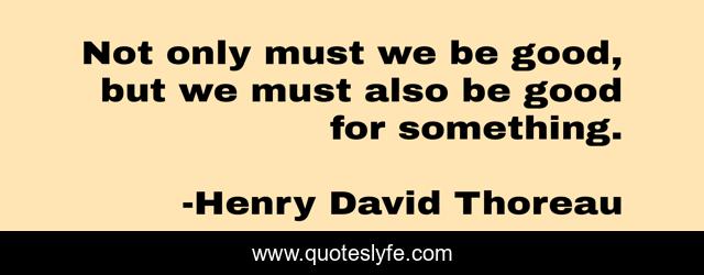 This page presents the quote "Not only must we be good, but we must also be good for something.". Author of this quote is Henry David Thoreau. This quote is about only, something,.