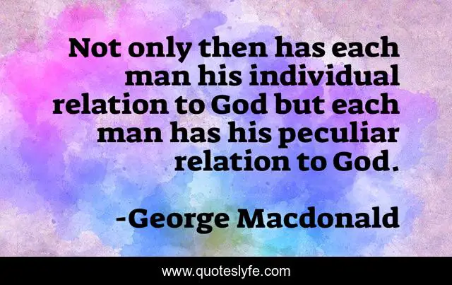 This page presents the quote "Not only then has each man his individual relation to God but each man has his peculiar relation to God.". Author of this quote is George Macdonald. .