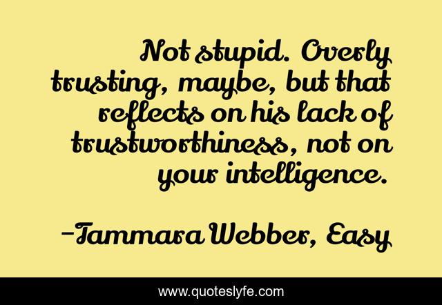 "Tammara Webber, Easy Quotes." Quoteslyfe.com, 2025. Fri. 05 Dec. 2025. <https://www.quoteslyfe.com/quote/Not-stupid-Overly-trusting-maybe-but-that-68116>.
