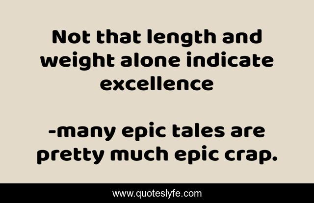 "many epic tales are pretty much epic crap. Quotes." Quoteslyfe.com, 2025. Fri. 05 Dec. 2025. <https://www.quoteslyfe.com/quote/Not-that-length-and-weight-alone-indicate-100999>.