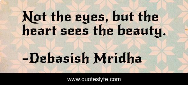 This page presents the quote "Not the eyes, but the heart sees the beauty.". Author of this quote is Debasish Mridha. This quote is about beauty, how-to-see-beauty, philosophy, debasish-mridha, what-is-beauty, quotes, inspirational, enthusiasm, debasish-mridha-m-d,.