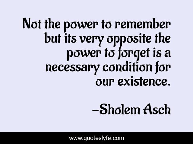 This page presents the quote "Not the power to remember but its very opposite the power to forget is a necessary condition for our existence.". Author of this quote is Sholem Asch. .