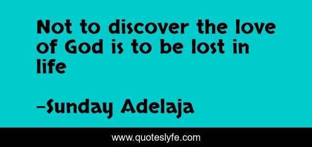 This page presents the quote "Not to discover the love of God is to be lost in life". Author of this quote is Sunday Adelaja. This quote is about not, life, discover, lost,.