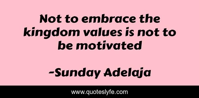 This page presents the quote "Not to embrace the kingdom values is not to be motivated". Author of this quote is Sunday Adelaja. This quote is about kingdom, embrace, values,.