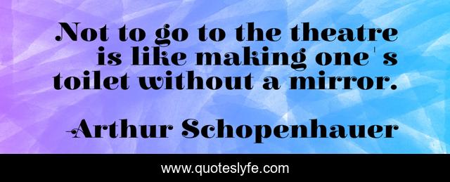 This page presents the quote "Not to go to the theatre is like making one's toilet without a mirror.". Author of this quote is Arthur Schopenhauer. This quote is about acting, theatre,.