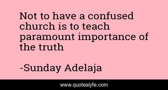 This page presents the quote "Not to have a confused church is to teach paramount importance of the truth". Author of this quote is Sunday Adelaja. This quote is about paramount, importance, confused, truth, church, teach,.