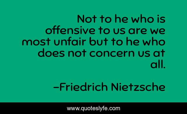 This page presents the quote "Not to he who is offensive to us are we most unfair but to he who does not concern us at all.". Author of this quote is Friedrich Nietzsche. This quote is about apathy, indifference,.
