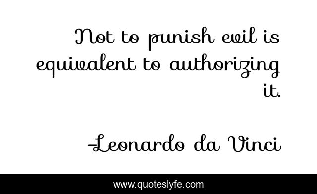 This page presents the quote "Not to punish evil is equivalent to authorizing it.". Author of this quote is Leonardo da Vinci. This quote is about action, evil, inaction,.