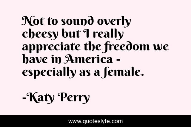 This page presents the quote "Not to sound overly cheesy but I really appreciate the freedom we have in America - especially as a female.". Author of this quote is Katy Perry. This quote is about sound, america, appreciate,.
