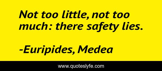 This page presents the quote "Not too little, not too much: there safety lies.". Author of this quote is Euripides, Medea. This quote is about nurse, greek-tragedy, play,.