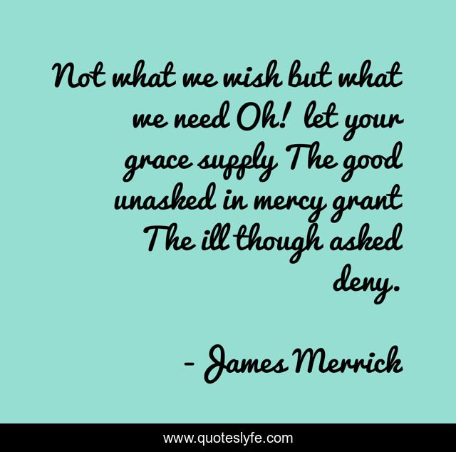 This page presents the quote "Not what we wish but what we need Oh! let your grace supply The good unasked in mercy grant The ill though asked deny.". Author of this quote is James Merrick. .
