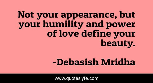 This page presents the quote "Not your appearance, but your humility and power of love define your beauty.". Author of this quote is Debasish Mridha. This quote is about love, beauty, philosophy, debasish-mridha, power-of-love, quotes, inspirational, enthusiasm, definition-of-beauty,.