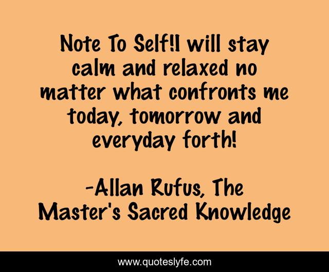 "Allan Rufus, The Master's Sacred Knowledge Quotes." Quoteslyfe.com, 2025. Sat. 06 Dec. 2025. <https://www.quoteslyfe.com/quote/Note-To-Self-I-will-stay-calm-106475>.