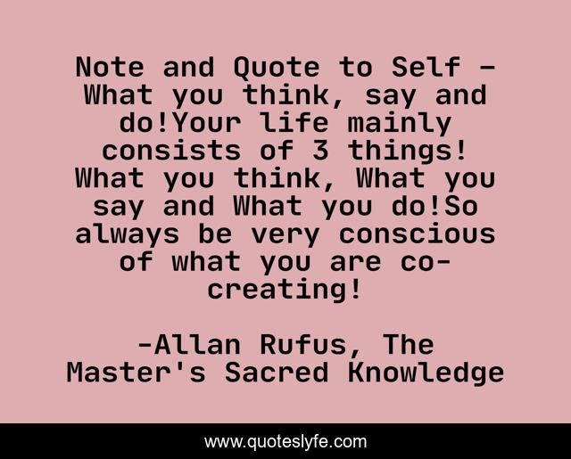 "Allan Rufus, The Master's Sacred Knowledge Quotes." Quoteslyfe.com, 2025. Fri. 05 Dec. 2025. <https://www.quoteslyfe.com/quote/Note-and-Quote-to-Self-What-you-87940>.