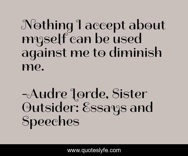 "Audre Lorde, Sister Outsider: Essays and Speeches Quotes." Quoteslyfe.com, 2025. Fri. 05 Dec. 2025. <https://www.quoteslyfe.com/quote/Nothing-I-accept-about-myself-can-be-104694>.