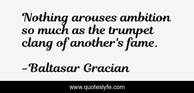 This page presents the quote "Nothing arouses ambition so much as the trumpet clang of another's fame.". Author of this quote is Baltasar Gracian. This quote is about models, role,.