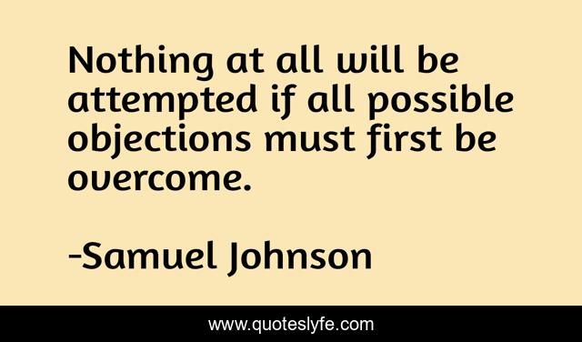 This page presents the quote "Nothing at all will be attempted if all possible objections must first be overcome.". Author of this quote is Samuel Johnson. .